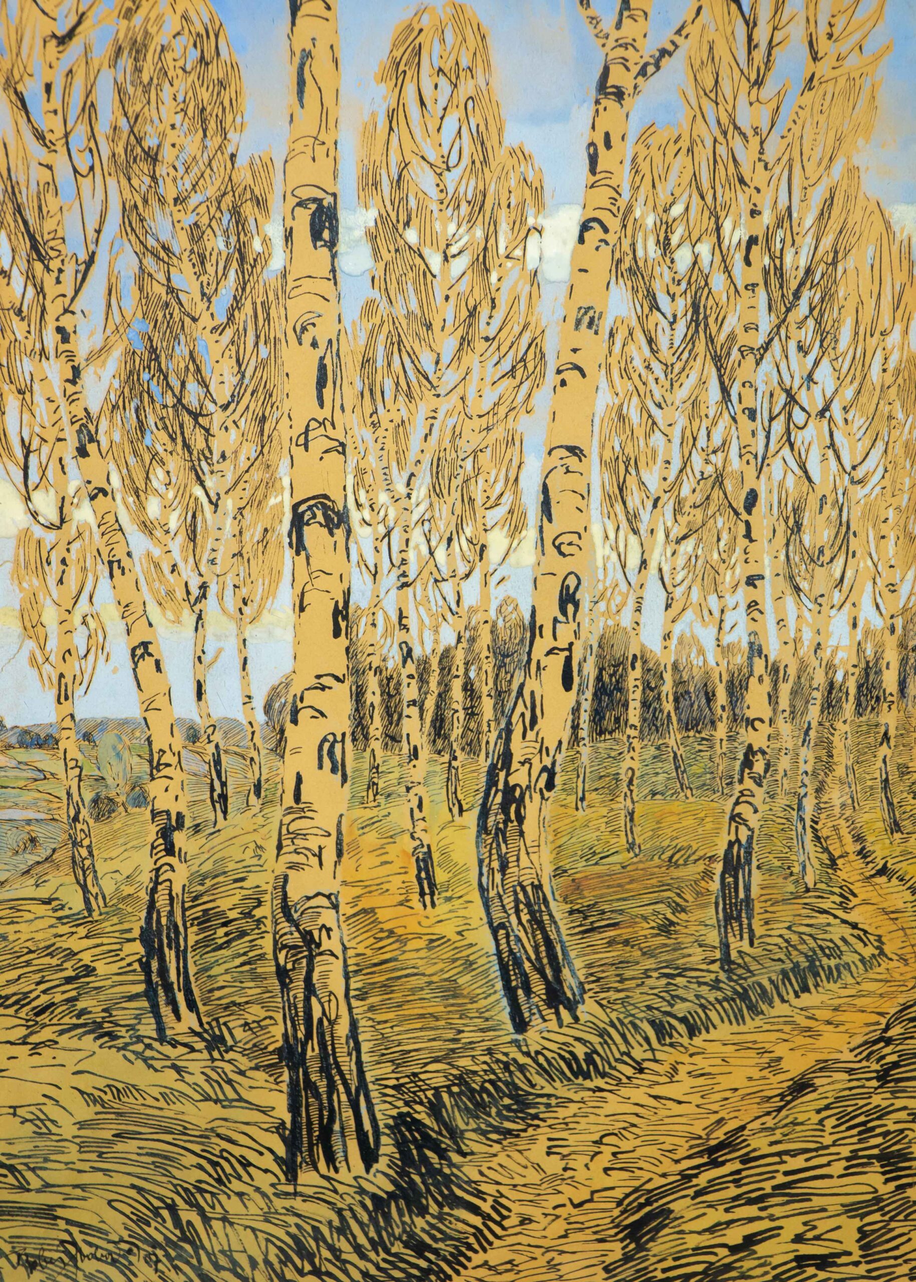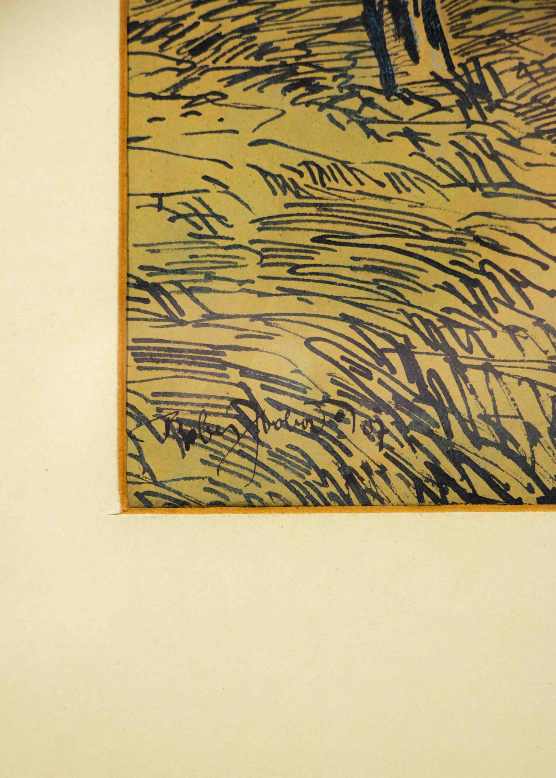 Dat. 1907, sign., neurčeno, tuž, akvarel, papír, pasparta, zaskleno, rám