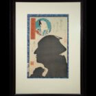 Japonsko, dřevořez, papír, pasparta, sklo, rám