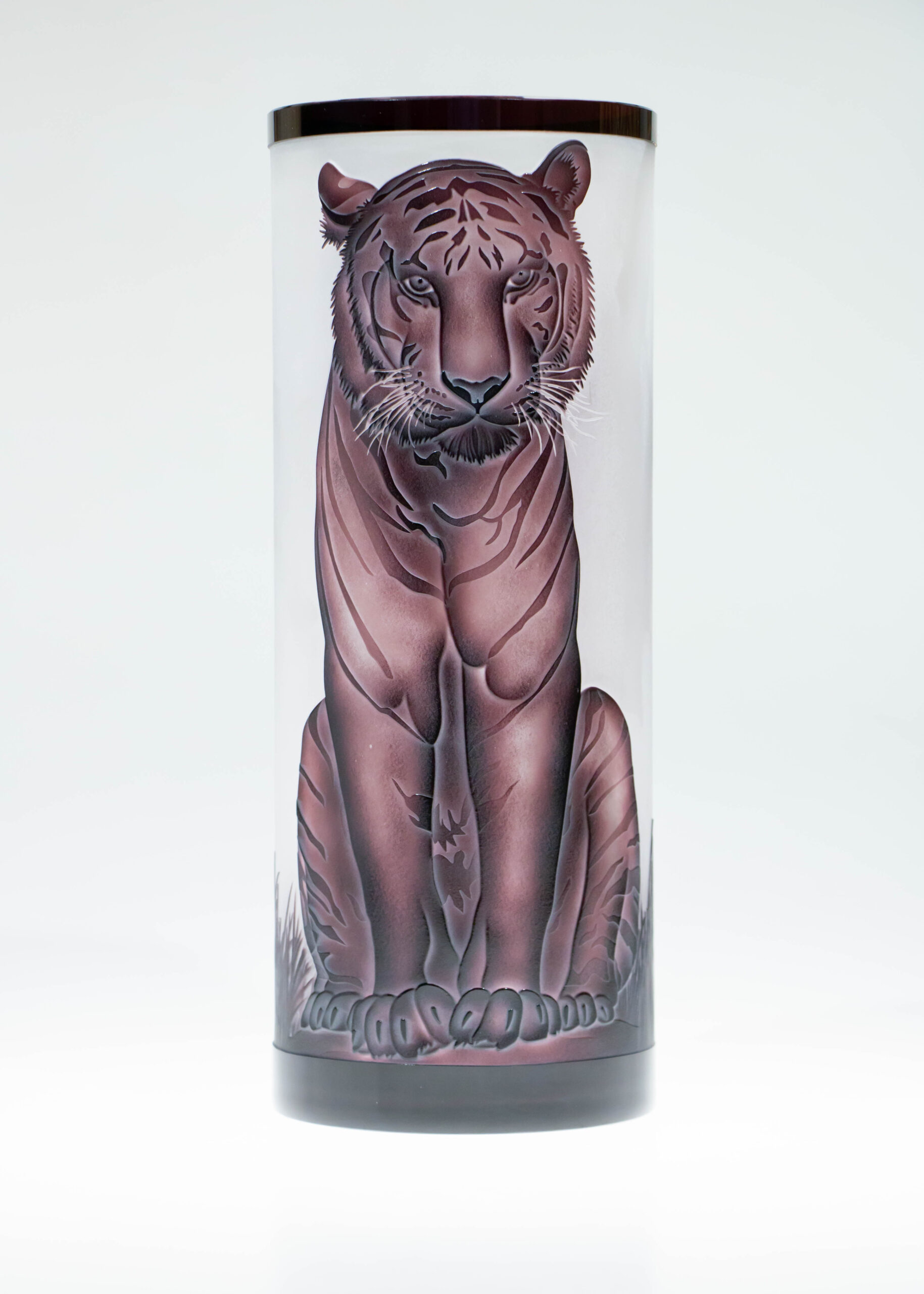 Česko, 20. stol., ametystové sklo, pískované sklo, v. 31,5 cm